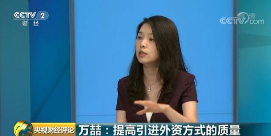 国家发改委国际合作中心首席经济学家 万喆:最开始引进外资的时候是比较粗放的,比如说地方招商引资给地、补贴钱,给优惠等等,但现在不同。第一,要让外资看到,我们本身的经济实力、技术开发能力,人才队伍也是比较强的,你到我这来配套会很好;第二,要同等对待,好的营商环境,有同等对待非常重要;最后一个,法律法规的建设进一步完善成熟,这一点跟上对于外资来说吸引力也会增大。