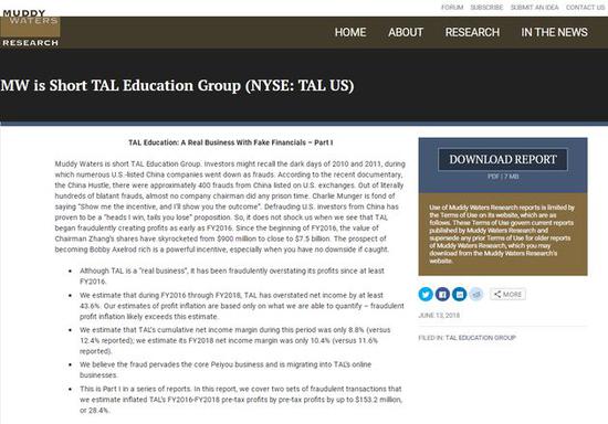 北京时间6月13日晚,以做空中概股而闻名的“浑水公司”(Muddy Waters Research)再次出手,这次瞄准的目标是在纽交所上市的中国公司好未来(NYSE:TAL)。