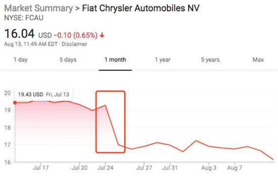 在公司前CEO马尔乔内去世后几个小时,FCA便公布了财报,导致公司股价急挫16%,创下2017年1月以来的最大单日跌幅。麦明恺接通了公司的二季度财报电话会议,但先对马尔乔内离世默哀了一分钟。