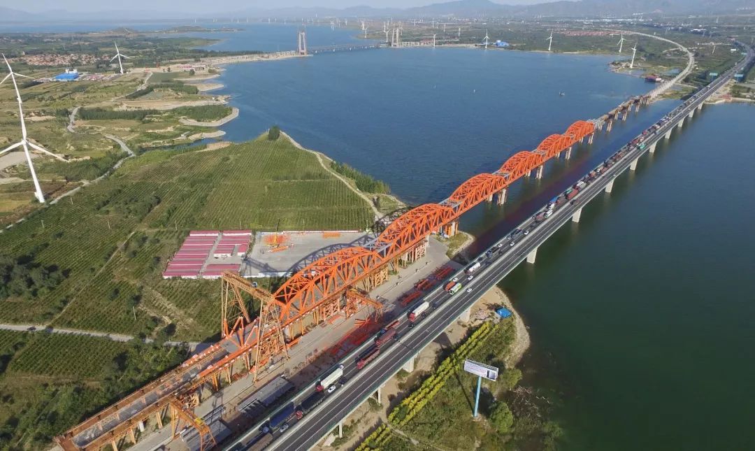 这是建设中的京张高铁工程官厅水库特大桥(2017年9月10日无人机拍摄)。 新华社记者 牟宇 摄