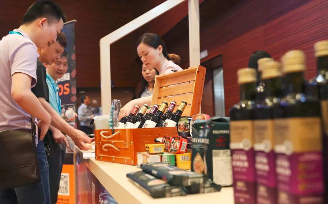 在上海举行的2018中国国际进口博览会食品展商客商供需对接会上,参观者向展商工作人员咨询商品信息(6月14日摄)。 新华社记者 方喆 摄