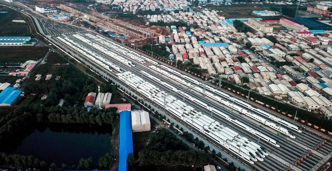 这是中国铁路沈阳局集团有限公司长春动车运用所等待发车的高铁列车(2017年9月18日无人机拍摄)。 新华社记者 张楠 摄