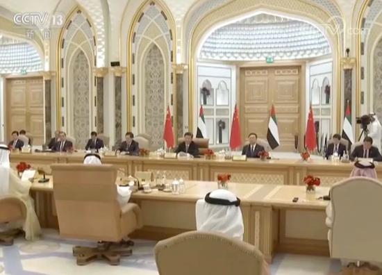 阿布扎比王储穆罕默德表示,我对2015年对中国的访问记忆犹新。阿方很高兴能接待习主席这次对阿联酋的历史性访问。我们十分钦佩中国取得的发展成就,高度认同习近平主席的远见卓识和治国理政理念,相信中国有着光明的未来,必将为世界和平和人类进步作出更大贡献。阿中在政治、经济、金融、科技、能源、人文等广泛领域拥有巨大合作潜力,深化同兄弟般中国的传统、战略、友好关系始终是阿联酋对外关系的重中之重。阿中关系提升至全面战略伙伴关系符合双方共同心愿,将更好造福两国人民。阿联酋坚定支持一个中国原则,赞赏中国在国际事务中的重要作用,愿密切同中国在发展、反恐等重大问题上的沟通和协调。