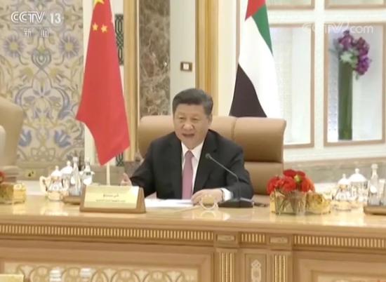 习近平强调,双方要把中阿全面战略伙伴关系落到实处,夯实政治互信,继续照顾彼此核心利益和重大关切,支持对方走适合本国国情的发展道路。中阿是共建“一带一路”的天然合作伙伴,中方视阿联酋为“一带一路”建设重要支点国家,赞赏王储殿下提出“重振丝绸之路”设想。双方要加强发展战略对接和产业政策沟通,规划好、运营好中阿共建“一带一路”旗舰项目,促进中东海湾地区经济发展。中方愿同阿方打造全方位、立体化能源合作格局,深化投资和金融合作,拓展创新合作。要加强安全合作,坚决反对一切形式的恐怖主义。要坚持民心相通,密切人文交流,加强不同宗教和不同文化包容互鉴。中方支持实施好王储殿下发起的“青年大使”访华项目,赞赏副总统兼总理殿下推出的“拥抱中国”计划,愿同阿方分享经验,共同将迪拜世博会办成一届令人瞩目的盛会。