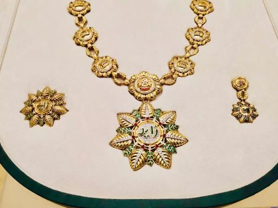 △扎耶德勋章的宝石上刻有阿拉伯文“扎耶德”字样。(央视记者荆伟拍摄)