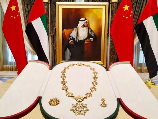 △扎耶德勋章以阿联酋开国总统扎耶德命名,是阿联酋国家最高荣誉勋章。(央视记者荆伟拍摄)