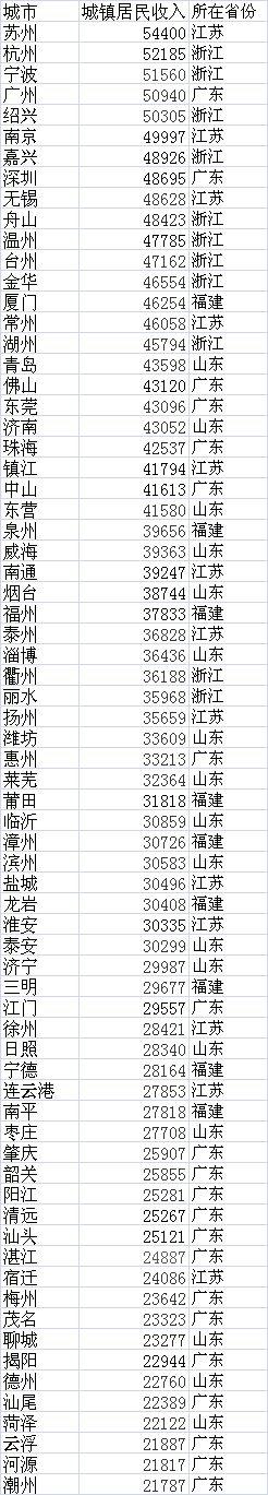 第三的无锡也达到48628元,与苏州一样,凭借外向型产业的发展,地处苏南地区的无锡在改革开放后经济也高速发展,居民收入也节节升高。