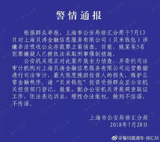 图片来源:视觉中国与此同时,当晚上海市公安局多个分局也通报了近期辖区内涉嫌非法吸收公众存款、集资诈骗等44起案件,关联主体均为互联网金融平台。