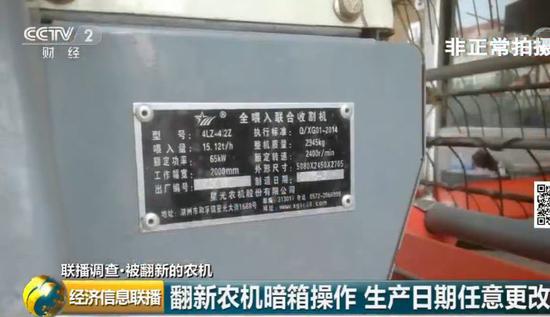 除了铭牌,收割机上所有能看出真实制造日期的信息都要被替换成2016年的信息。就这样,收割机摇身一变,生产日期一下子推迟了1年多。从业者告诉记者,对于二手农机,晚生产一年,售价就要高出几千甚至上万元。