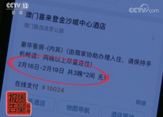 这让他感到非常生气,自己明明在去哪儿网支付全款房费,提前预定了澳门酒店连续三晚的住宿。谁知,入住第一天,也就是大年初一,折腾了几个小时才入住,并且第二天又不让住了。