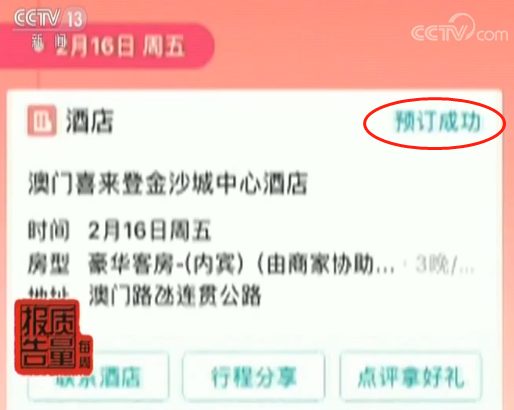 消费者 张先生:又过了一两个小时以后,第三方的微信给我发了一个订单号,是一个八位数的,我拿到这个八位数的根本也无法办理入住。