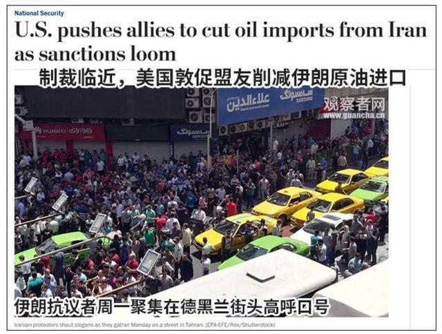 CNN、《华盛顿邮报》报道截图该官员表示,美国下周将派代表前往中东,和该地区盟国商讨应对方案,确保全球石油供应不会受到美国对伊制裁的冲击。他还称,此前美国官员曾赶赴欧洲和亚洲,向相关盟国解释美对伊政策的“新方向”,并争取他们的支持。这位官员表示,各国企业11月之后如果仍和伊朗进行经贸活动,也将受到制裁。