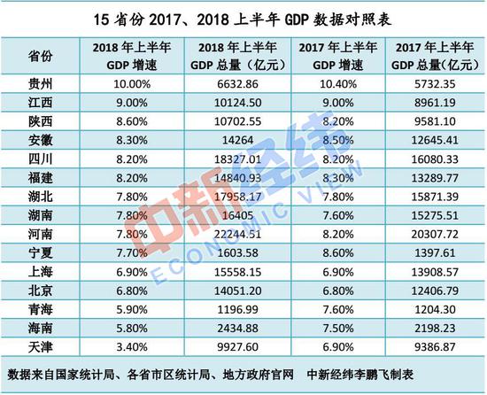 原标题:15省份公布上半年GDP:天津被江西赶超 贵州暂领跑增速榜