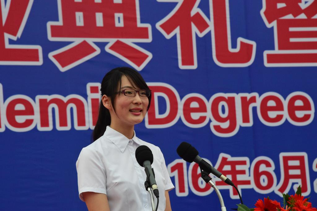 本科生毕业代表、四川省优秀毕业生周韵桐发言