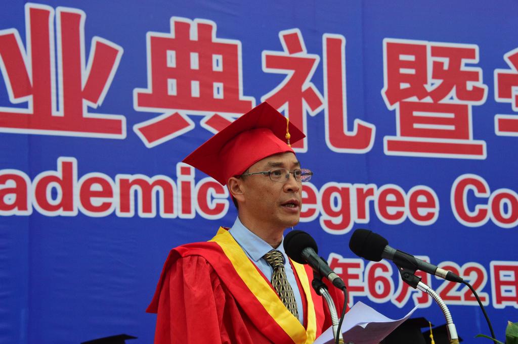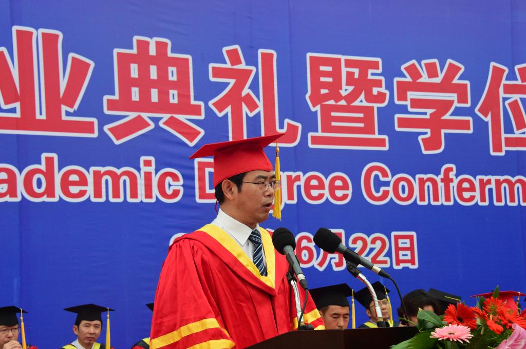 在一曲慷慨激昂、催人奋进的国歌声后,校长赵金洲发表了题为《大时代需要大担当 大担当方有大作为》的致辞。赵金洲寄语广大毕业生,要做一个有担当的青年人,有担当,国家就有前途;有担当,民族就有希望。
