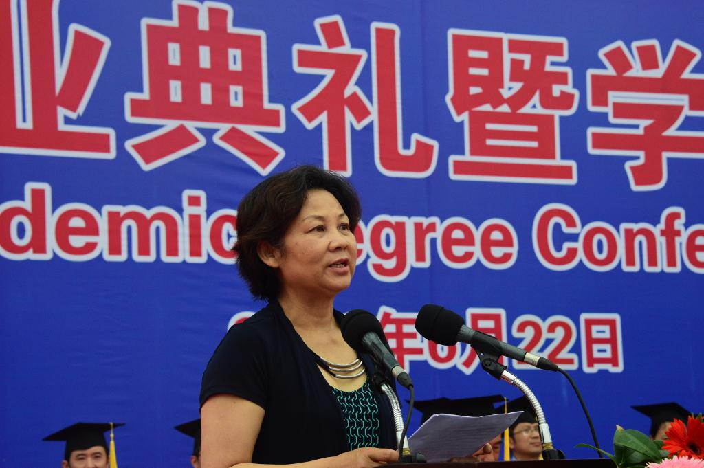 全国五一劳动奖章获得者、全国巾帼建功立业标兵、全国十大“海洋人物”、矿机77级校友朱江作为校友代表发言。她以自己的人生经历提醒各位毕业生对待工作、生活和学习都保持良好的心态,积极向上,做一个坚强快乐的人,在荣誉面前不争功,在失误面前不推过,要把困难和挫折看成是一种历练,看成是人生阅历的财富,看成是成长进步中不可或缺的因素。