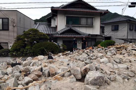 7月11日,在日本广岛吴市天应町地区,居民清理房屋外的泥沙。新华社记者马平摄遗憾的是日本对暴雨可能带来的灾害预见虽不算迟,但应对行动比较迟缓,以至于7月暴雨得以肆虐西日本,造成国民生命财产重大损失,其教训值得深思。
