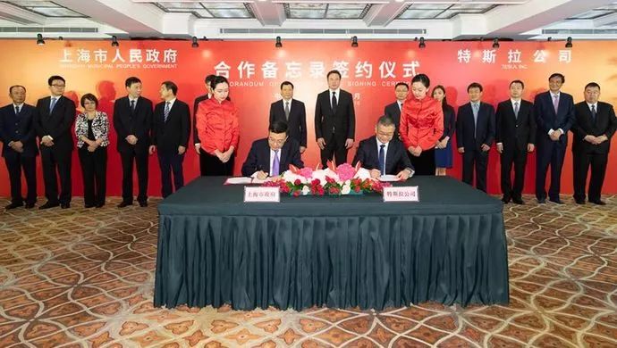 规划年产50万辆纯电动整车的特斯拉超级工厂正式落户上海临港地区,这是上海有史以来最大的外资制造业项目。今天(10日),上海市政府和美国特斯拉公司签署合作备忘录,上海市市长应勇、特斯拉公司董事长兼首席执行官埃隆·马斯克出席并共同为特斯拉(上海)有限公司和特斯拉(上海)电动汽车研发创新中心揭牌。上海市常务副市长周波与特斯拉公司副总裁任宇翔代表双方签约。