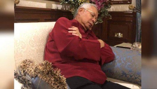 2018年5月,纳吉布在沙发上睡觉。刚刚卸任的马来西亚前总理纳吉布家中遭到彻夜搜查。马来西亚《星洲日报》称,该国警方商业犯罪调查部门主管辛格向媒体表示,查出的现金及物品绝大多数来自纳吉布子女在吉隆坡市中心的高档公寓,也有少部分来自于纳吉布的私人住宅。警方称,上述物品包括此前清点出的1.14亿林吉特的26国现金,这些现金由22名国家银行人员清点3天完成。对于其余的物品,警方总计动用了8支由警员和专家组成的特别调查组,总计150人,耗时36天完成清查。这些物品包括1.2万件珠宝首饰、567个手提包、423块手表、234副太阳镜等。在这些物品中,价值最昂贵的是一条镶钻的金项链,市价估值为640万林吉特。此外,一个私人订制的手提包引起热议,据称其价值至少为160万林吉特。辛格表示,警方需要向不少外国专家求助以确认这些奢侈品的价格,此外还要调查这些奢侈品的来源。