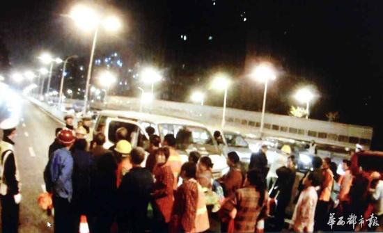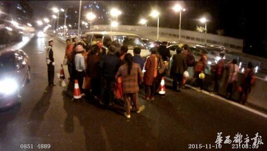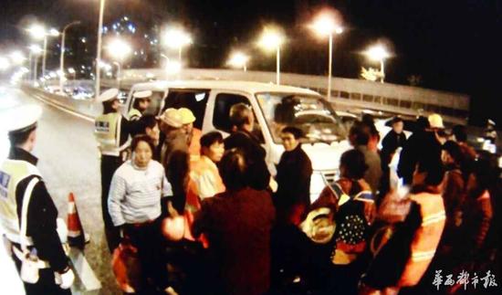华西都市报讯 (客户端记者  杨雪  实习生  邓绍希  摄影  雷远东)11月10日晚,成都市一辆面包车因超载被成都市交警六分局交警当场拦下。在车里的人下车时,警察惊呆了:核载6人的面包车里,陆续走出了35个大爷大妈。