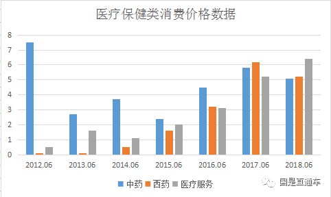 根据国家统计局分类,医疗保健大类中又分为中药、西药和医疗服务。数据显示,中药增幅较高,但变动幅度不大。西药和医疗服务普遍呈增长态势。