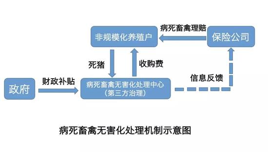 查明了原因,上海立即对相关处理规范进行了修订,为了调动散户们的积极性,政府对病死家禽家畜的处理进行补贴。政府补贴直达无害化处理中心,农户不需要承担处理费用,但只有把病死家禽家畜送到处理中心拿到回执,才能申请领取农业保险。一些地方也会给农户部分补贴,鼓励主动送达处理中心的行为。例如《中国畜牧兽医报》2014年8月就刊登过一篇关于此次事发地湖州的《考察报告》,详细地提到湖州市对病畜处置中心的补贴措施,包括省财政一次性补贴360万元,市财政每年以出栏生猪为基数每头补助1元,病死猪处理每头补助80元,其他动物尸体处理每吨核收2600元等。在政府补贴病死家禽家畜无害化处理方面,湖州本是走在全国前列的。