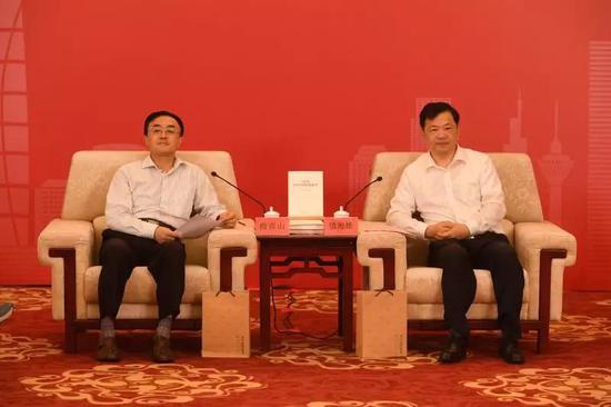 △该书主编、中宣部副部长、中央广播电视总台台长慎海雄(右),中央党史和文献研究院常务副院长曲青山(左)在座谈会现场改革开放进入深水区急需正确理论的指导