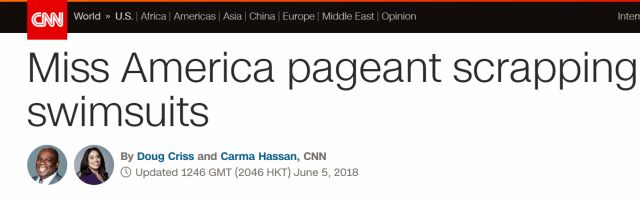 美国小姐董事会主席格雷琴·卡尔森(GretchenCarlson)在“早安美国”节目中宣布,这项活动将不再以泳装比赛为主题。卡尔森周二在节目中表示,之后的美国小姐选拔将是一场实实在在的“比赛”而不再把重点放在“选美”上。她称:“我们不会再以候选人的外表来评判他们。这是一种巨大的改变“。