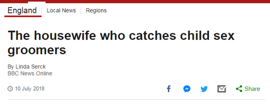 ▲“追捕恋童癖的家庭主妇”(via BBC)没错,从标题就可以看出——这位35岁的小姐姐之所以要扮演14岁小妹妹,就是为了 追查网上的恋童癖罪犯 。