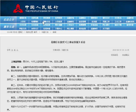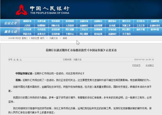 随后,中国人民银行行长易纲就近期外汇市场情况接受《中国证券报》记者采访。