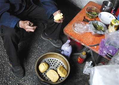 为了节省开支,祖孙俩过年也不回老家。只是在出租屋里买点好吃的——除了平时的馒头咸菜,再加上一条鱼。