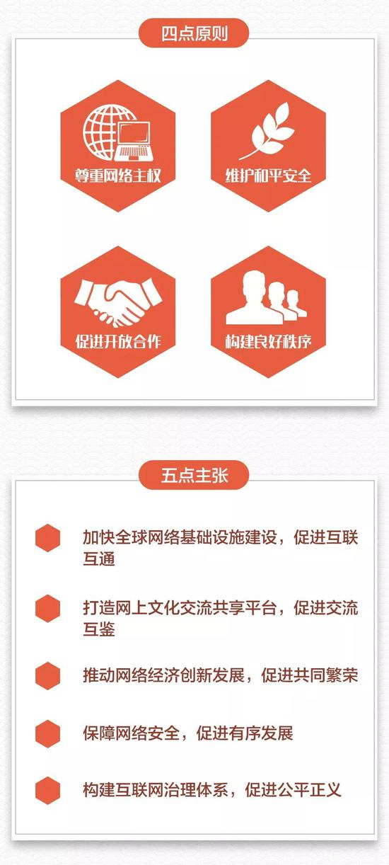 习近平曾指出,互联网发展是无国界、无边界的,利用好、发展好、治理好互联网必须深化网络空间国际合作,携手构建网络空间命运共同体。要理直气壮维护我国网络空间主权,明确宣示我们的主张。为此,习近平提出“四点原则”和“五点主张”:
