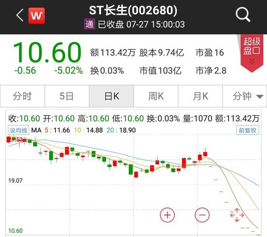 自疫苗案爆发以来,ST长生已连续9个跌停,目前股价仅10.6元。