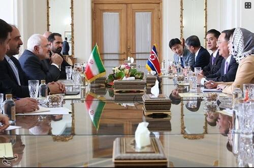 李勇浩与扎里夫握手(图片来源:CNN) 朝伊双方代表会谈(图片来源:韩联社)[环球网报道 记者 李慧玲]在美国重启对伊朗制裁之际,朝鲜外务相李勇浩访问伊朗引发关注。