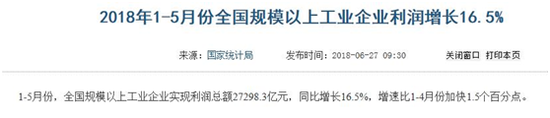 为佐证16.5%这一数据的真实性,国家统计局还特意指出,1-5月规模以上工业企业利润总额,与财政部的国有企业数据和上市公司财务季报数据总体趋势一致,是反映企业实际情况的。