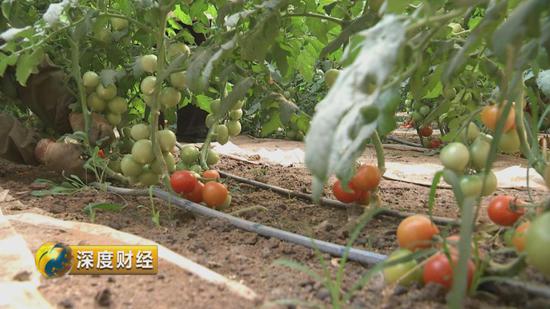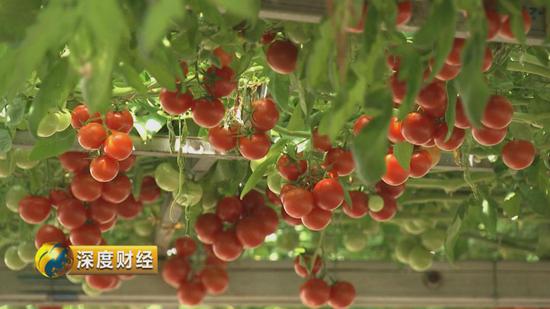 在大棚里,工人们正在采摘西红柿。这种西红柿看起来个头都比较小,一株秧苗产20多个果实,在以往,这种比普通西红柿产量低三分之一的品种,农户是不会选择种植的。但是这种西红柿糖度高,口感好,因此价格比普通西红柿高很多。