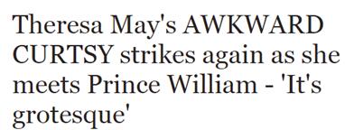 “特雷莎·梅再次做了一个荒诞可笑的屈膝礼,和别人完全格格不入。”