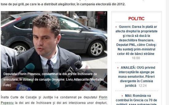 参考消息网3月21日报道 台媒称,罗马尼亚民主自由党议员弗罗林(Florin Aurelian Popescu)于2012年选举时,用20万块炸鸡贿赂选民,事后被判刑2年,不得假释,上诉要求也遭到法院拒绝。