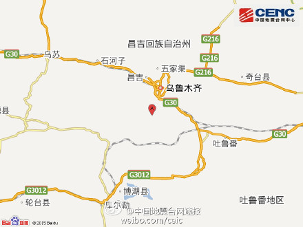 乌鲁木齐市发生3.9级地震 震源深度8千米