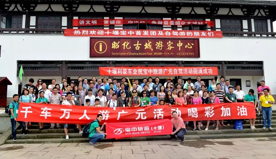 当天早上6:30,自驾游车队齐聚十堰天海石油车库,十堰“宝中旅游”集团与“天海石油”共同举办的“您开车 我加油 千车万人游广元”自驾游首发仪式正式举行。经过近8个小时的长途行进,车队最终到达号称“巴蜀第一县、蜀国第二都”的昭化古城,开始了三天的旅游行程。