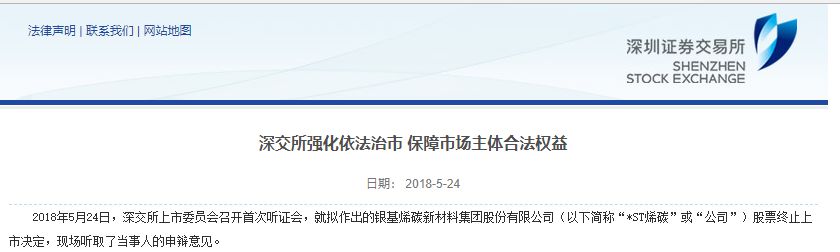 24日晚间,深交所网站发布公告称,当日就*ST烯碳退市召开听证会,这也是深交所首次召开听证会。