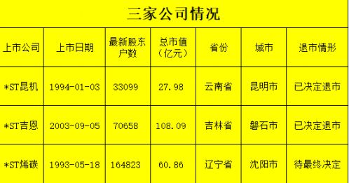 值得一提的是,*ST吉恩、*ST昆机和*ST烯碳这3家将退市或面临退市的公司,都有着东北地区的背景,*ST吉恩和*ST烯碳两家公司办公和注册都在东北,*ST昆机虽然办公、注册在云南,但大股东和实控人都在东北。