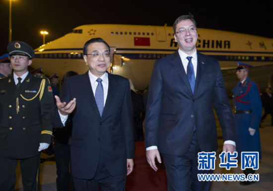 李克强抵达贝尔格莱德 塞尔维亚总理亲自接机