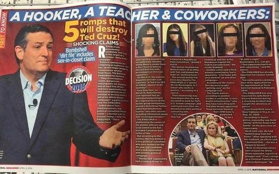 23日,美国家喻户晓的八卦小报《国民问询报》刊发报道称,“一名妓女、一名教师、一名同事”,5段将毁掉克鲁兹的情事。