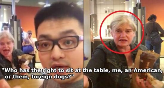 中国小伙携女友吃快餐 遭美国老太骂“外国狗”