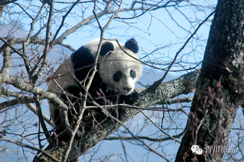 瞧,大熊猫、扭角羚、川金丝猴这三大国宝级野生动物在这个季节里一一登场了。憨态可掬的大熊猫整个冬季都游荡在唐家河的山林坡地,采食冻得僵硬的箭竹,睡眼惺松的它们除了吃和睡,还会调皮的爬上树**,常常摔得昏头昏脑。