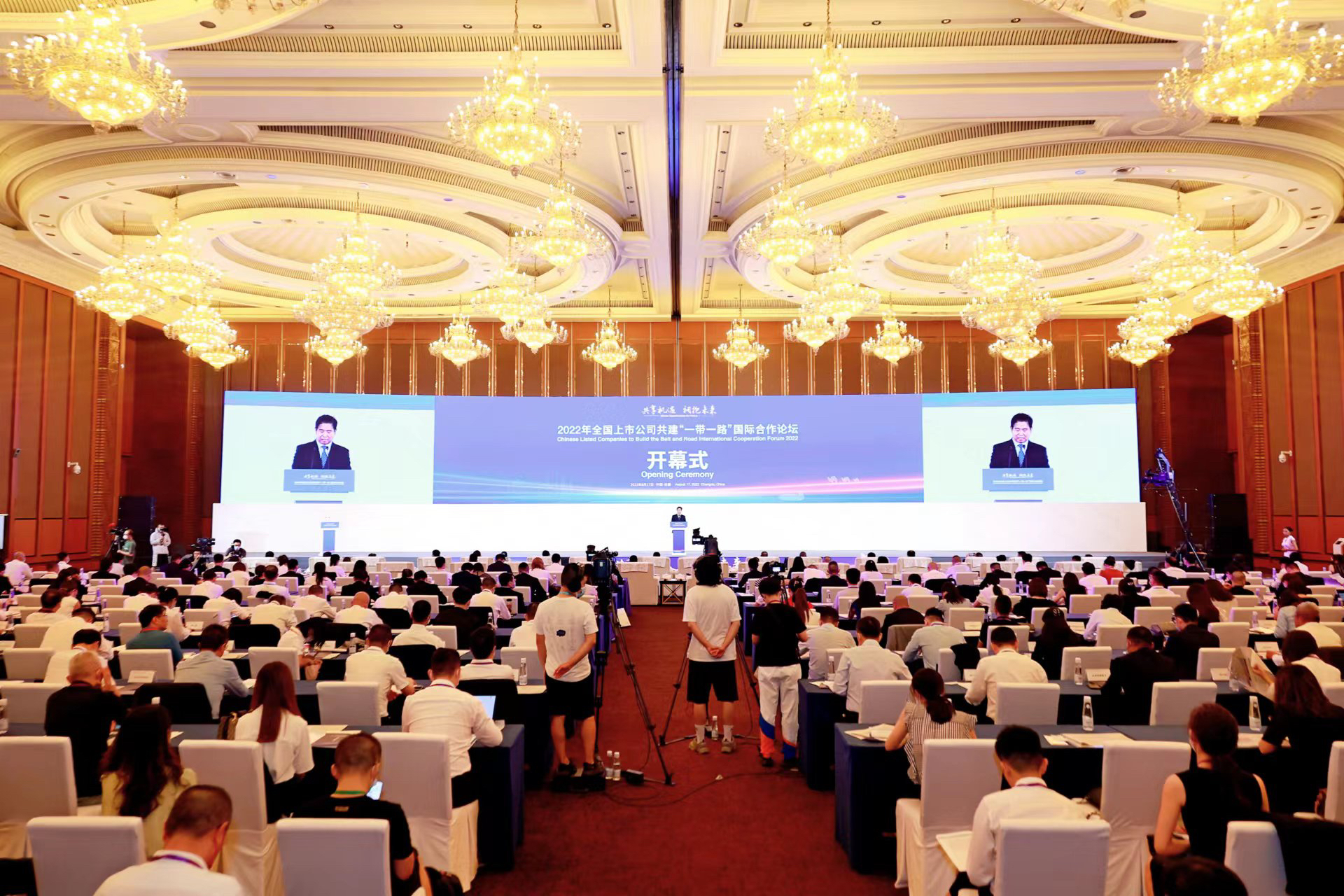 8月17日,由中国贸促会、全国工商联、四川省政府、世界贸易中心协会共同主办的2022年全国上市公司共建“一带一路”国际合作论坛在成都举行,会议以“共享机遇,拥抱未来”为主题,邀请驻华使领馆、商协会、上市公司、科研院所、专业机构、川渝企业等代表,围绕后疫情时代的机遇与挑战、推动“一带一路”绿色发展等议题交流研讨,分享共建“一带一路”促进共同繁荣、引领绿色发展的成绩和经验,探讨进一步拓展国际合作的方法和路径;组织上市公司与中小企业开展项目推介、交流对接,发挥上市公司“头雁效应”带动作用,携手“出海”共建“一带一路”。
