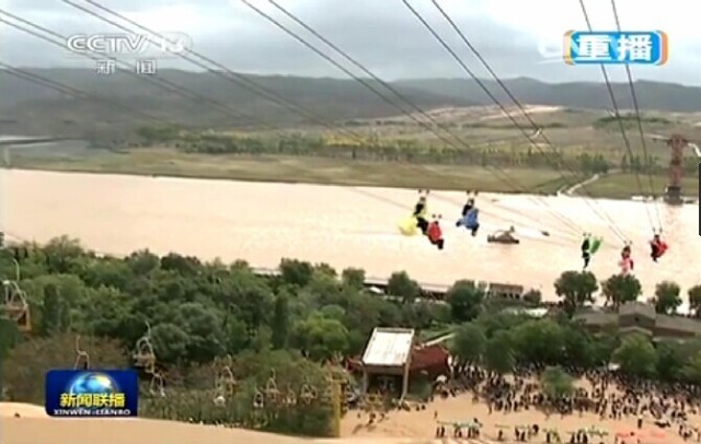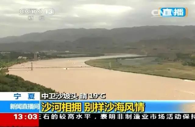 13点03分、CCTV-新闻频道《新闻直播间》--《江山多娇》栏目中对深受游客喜爱的沙坡头滑沙、羊皮筏漂流、飞黄腾达、沙海冲浪等经典项目进行了现场直播。