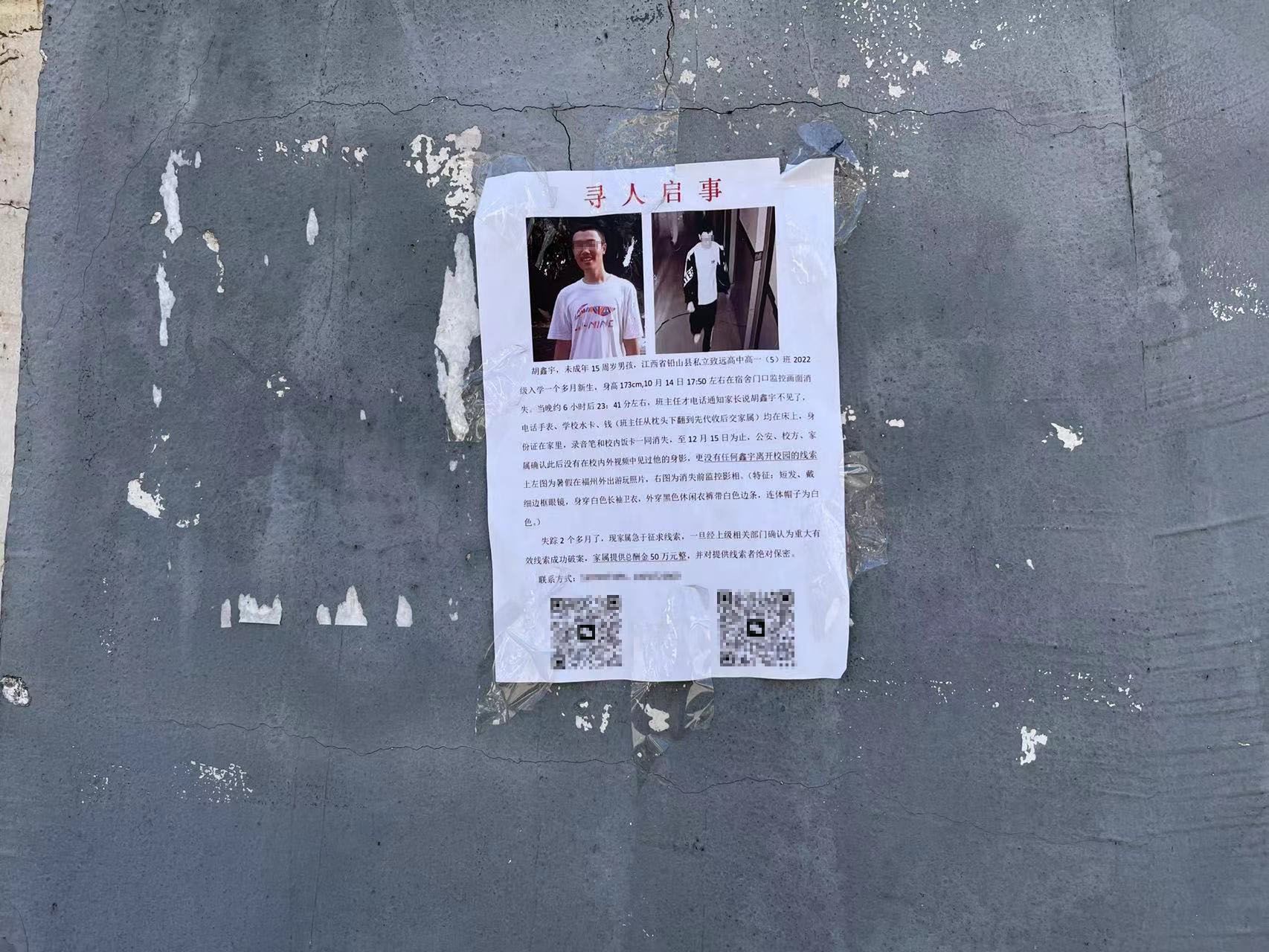 1月末,致远中学外墙依然张贴着胡鑫宇的寻人启事。新京报记者 丛之翔 摄2月2日上午10时,胡鑫宇事件最新调查情况公布。这个因失踪106天的15岁少年,被认定为自缢身亡,尸体发现地系原始第一现场——一场牵动全城,甚至全网的少年失踪事件最终尘埃落定。