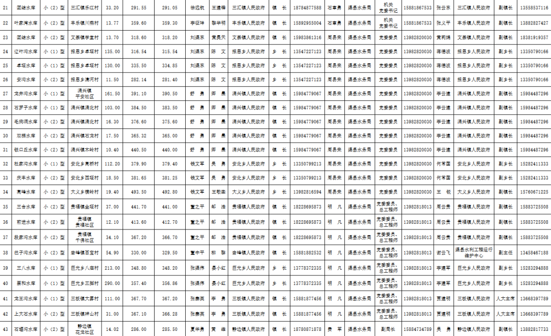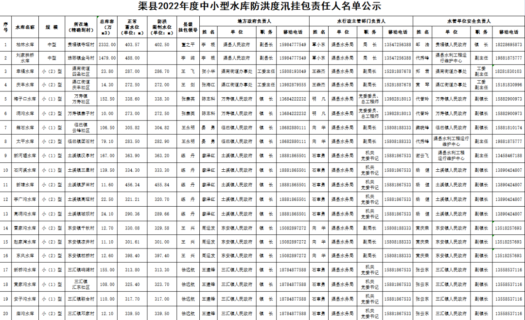 渠县2022年度中小型水库防洪度汛挂包责任人名单公示